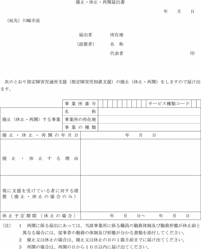4 法第21条の5の20第3項の規定による再開の届出又は同条第4項の規定による廃止若しくは休止の届出は、廃止・休止・再開届出書(第15号の18様式)により行うものとする。