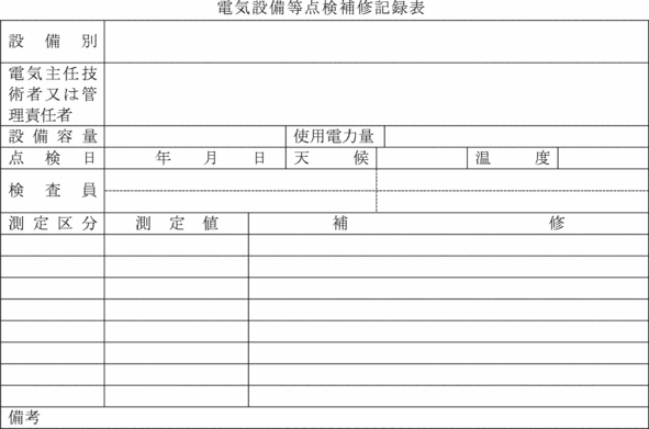 (電気設備点検結果等記録表)