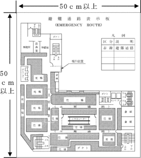 (1) 表示板の名称は、「避難通路表示板」とし、「EMERGENCY ROUTE」の文字を併記しなければならない。