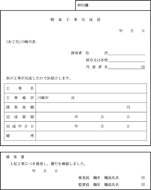 2 前項の検査は、請負業者から軽易工事完成届(別記様式)を提出させた後に行わなければならない。