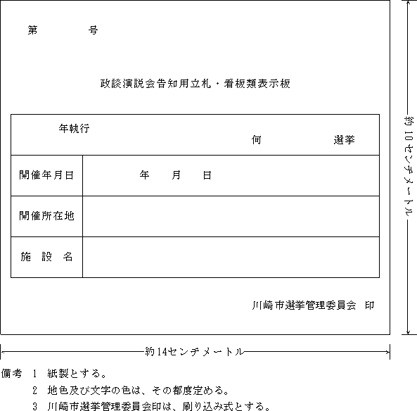 3 表示板は、政談演説会告知用の立札及び看板の類の使用中、公衆の見やすい場所に常時掲示しておかなければならない。