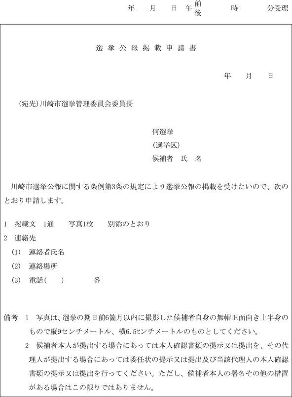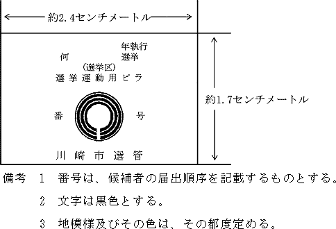 2 前項の表示板(以下この節において「自動車等の表示板」という。)は、法第86条の4の規定による立候補の届出を受理した後直ちに市委員会が交付する。