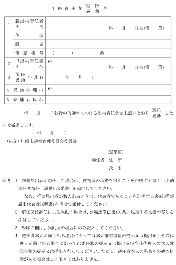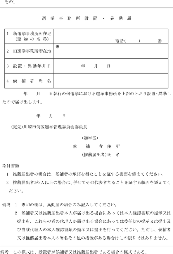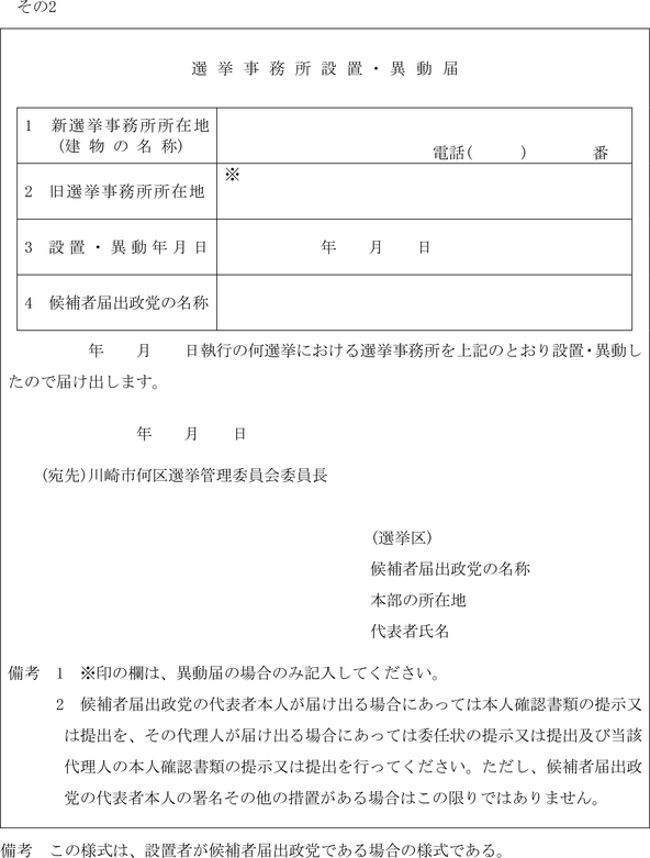 (選挙事務所の設置又は異動の届出)
