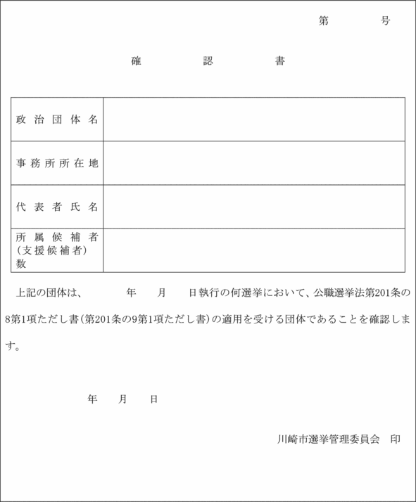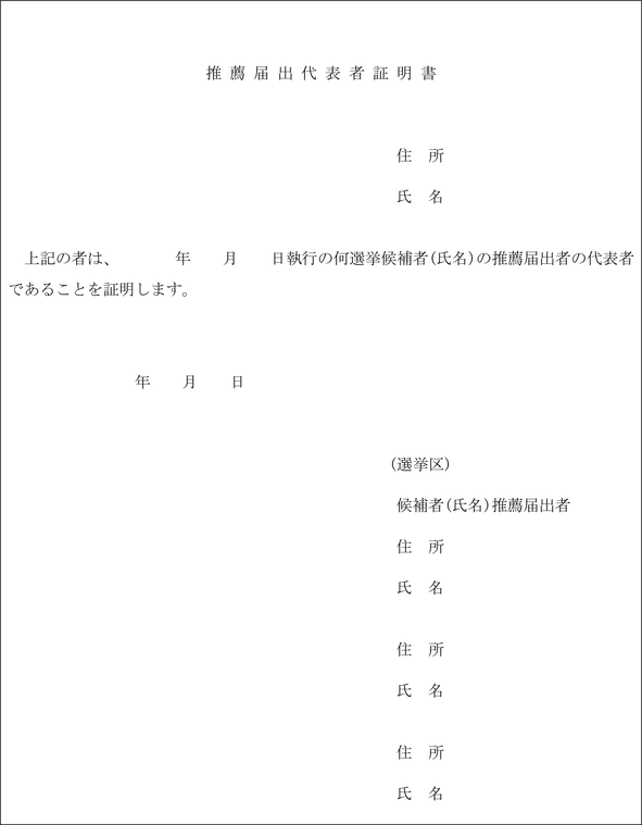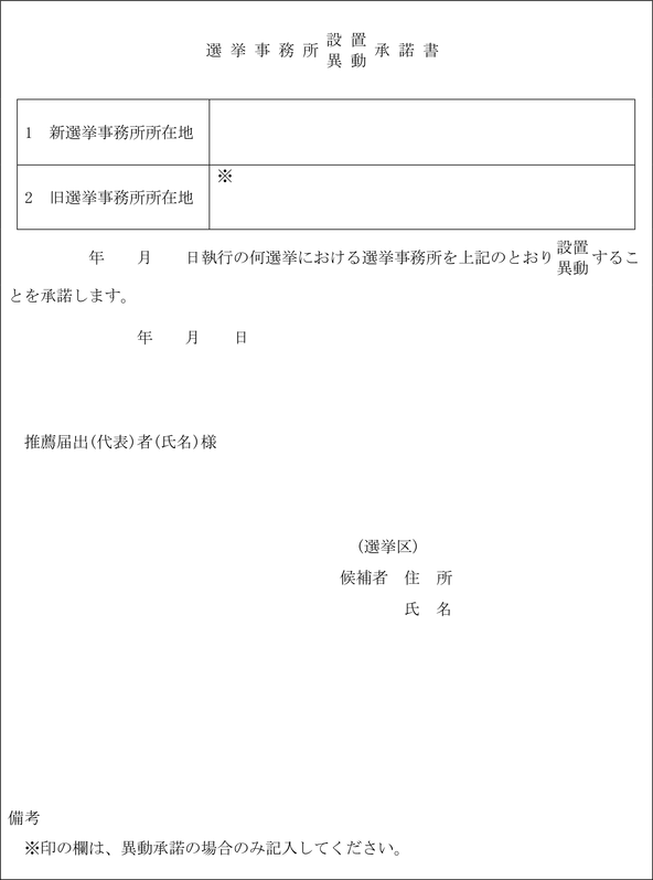 2 令第108条第2項又は第3項の規定による候補者の承諾を得たことを証明する書面は、選挙事務所設置(異動)承諾書(第9号様式)により、推薦届出者の代表者であることを証明する書面は、推薦届出代表者証明書(第10号様式)によらなければならない。