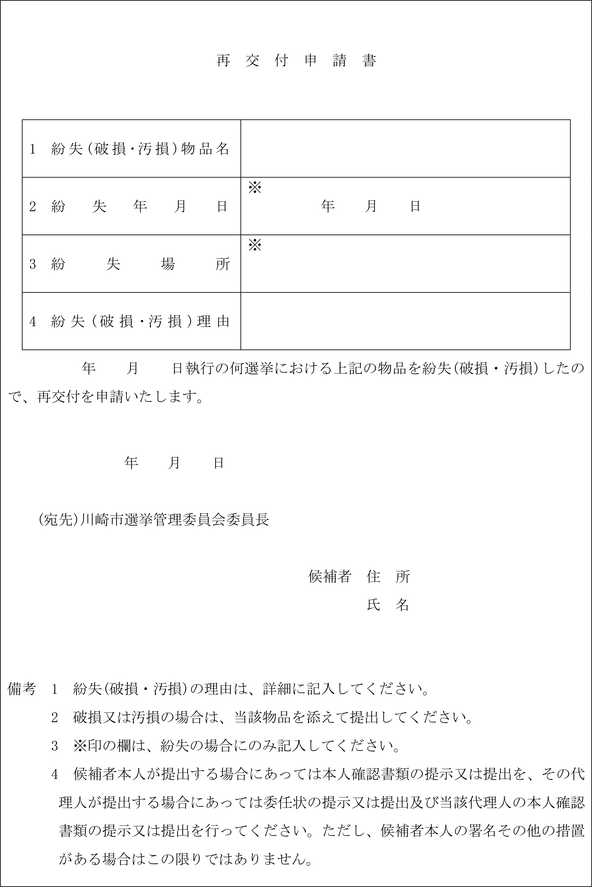(再立候補の場合の交付物品)