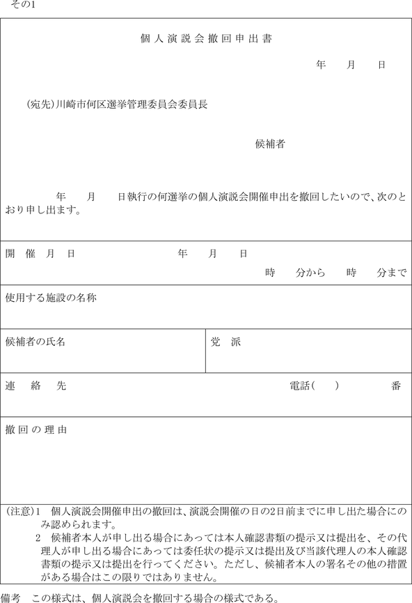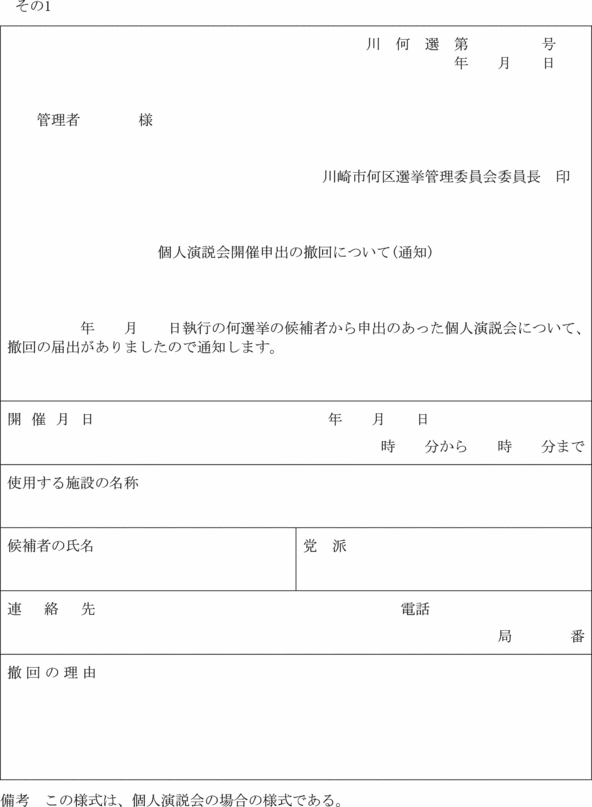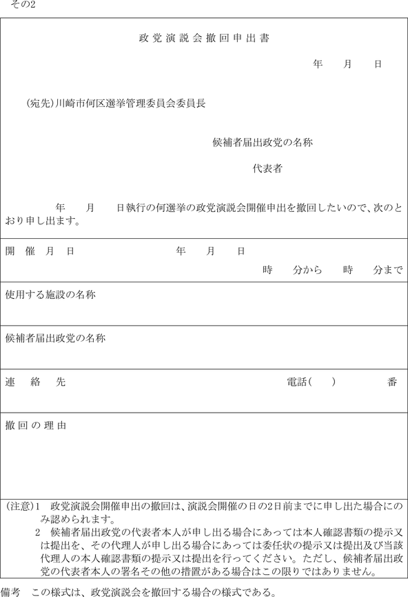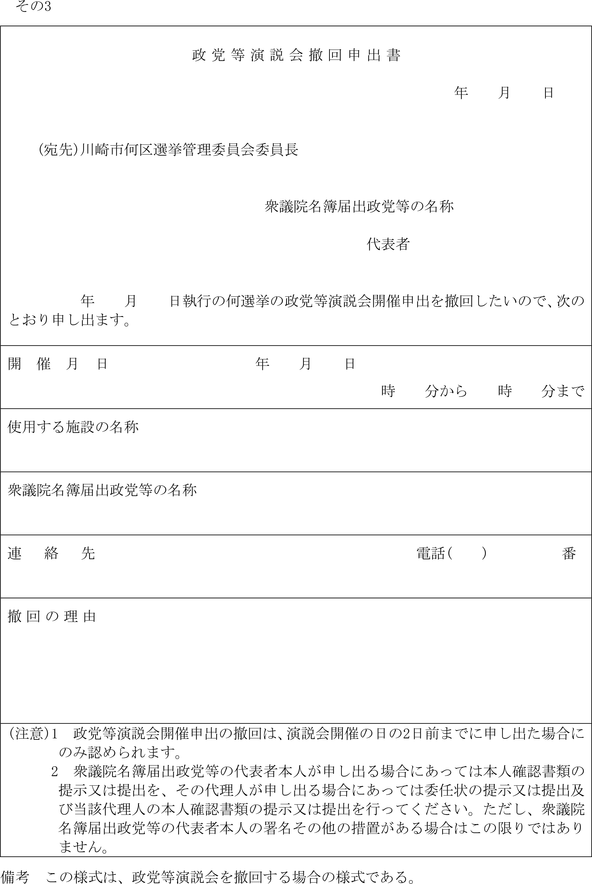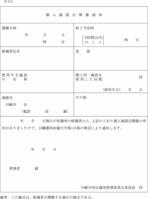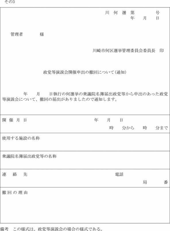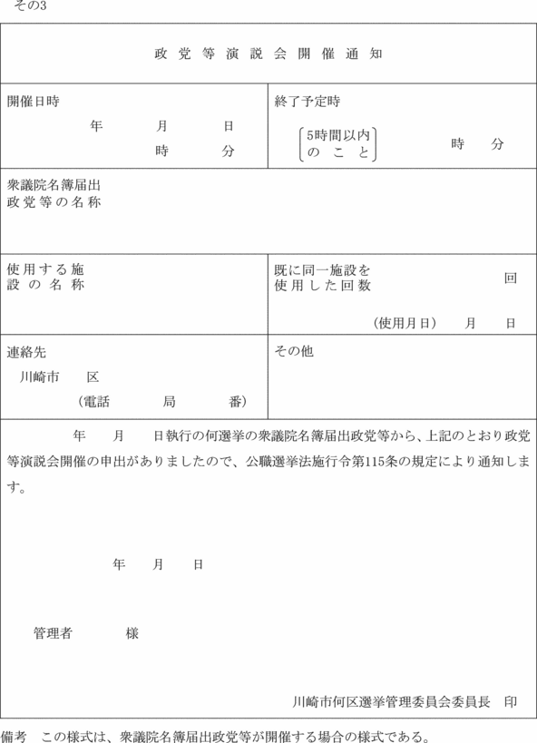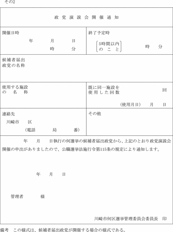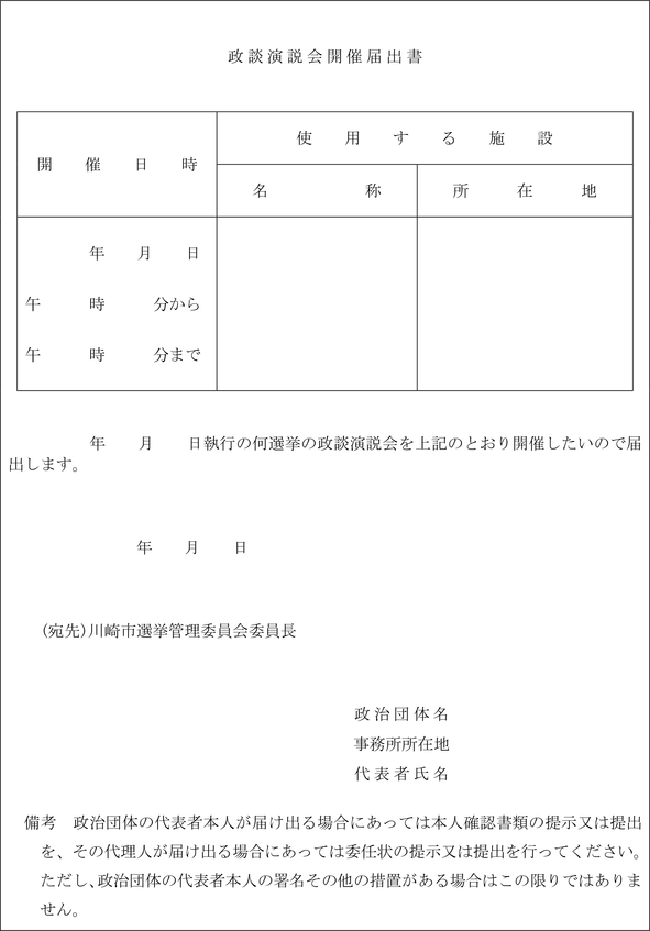 (政談演説会開催の届出書)