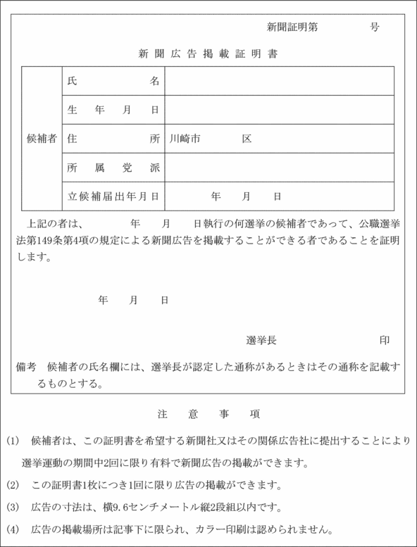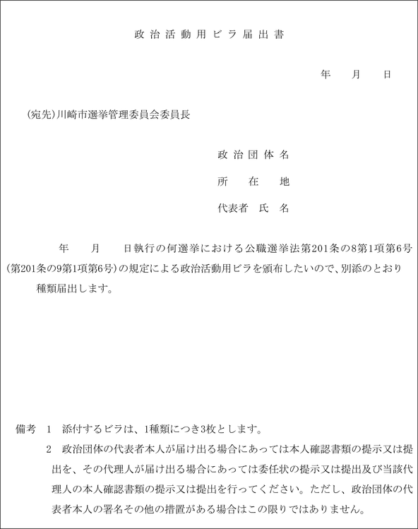 (政治活動用ビラの届出)
