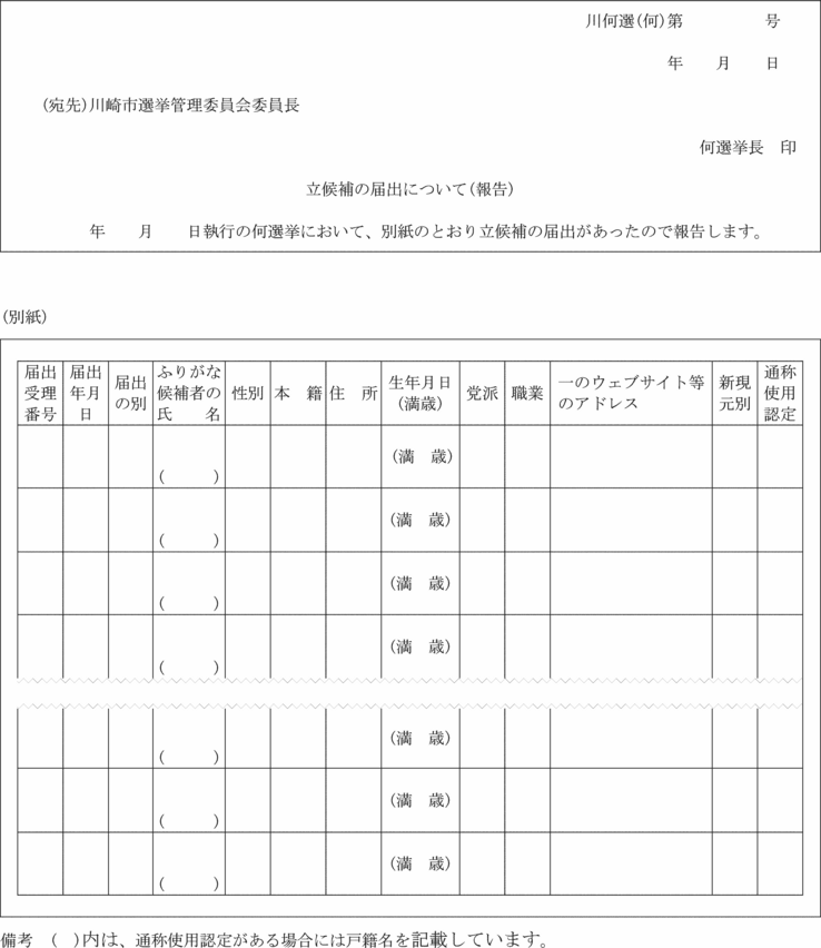 (立候補の届出に関する報告)