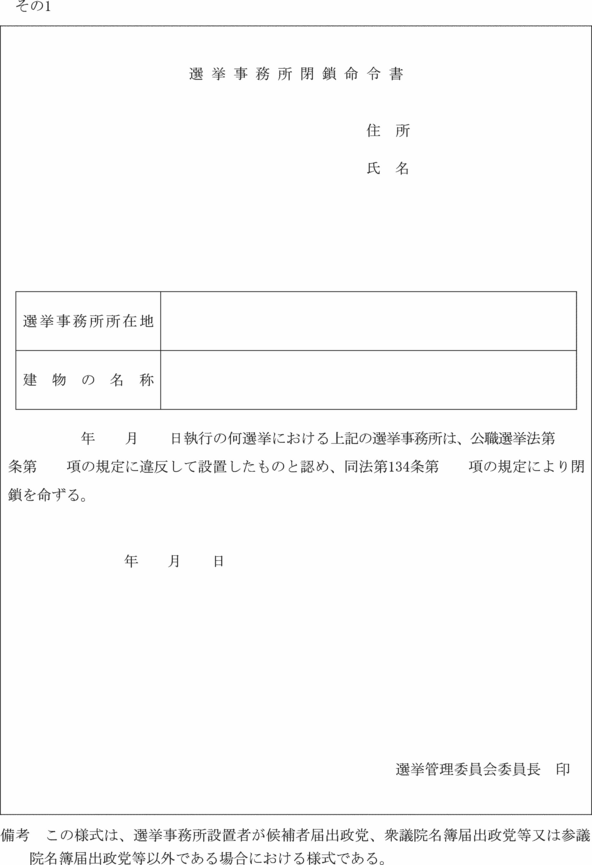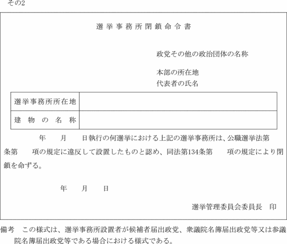 (選挙事務所の閉鎖命令)