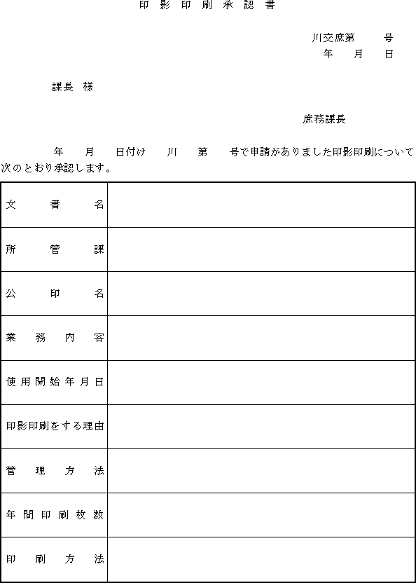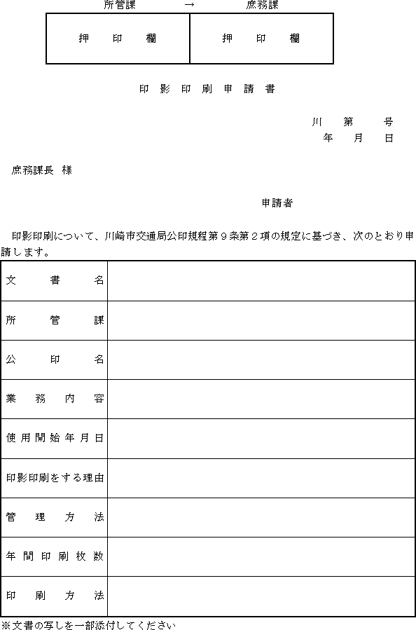 2 所管課長は、前項の規定に基づき、印影印刷申請書(第2号様式)の提出により庶務課長の承認を求めるものとする。
