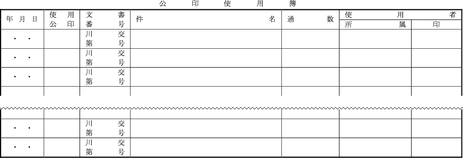 第11条 庶務課長は、公印台帳(第9号様式)を備え、公印の新調、改刻又は廃止の都度必要事項を記載し、整理しなければならない。