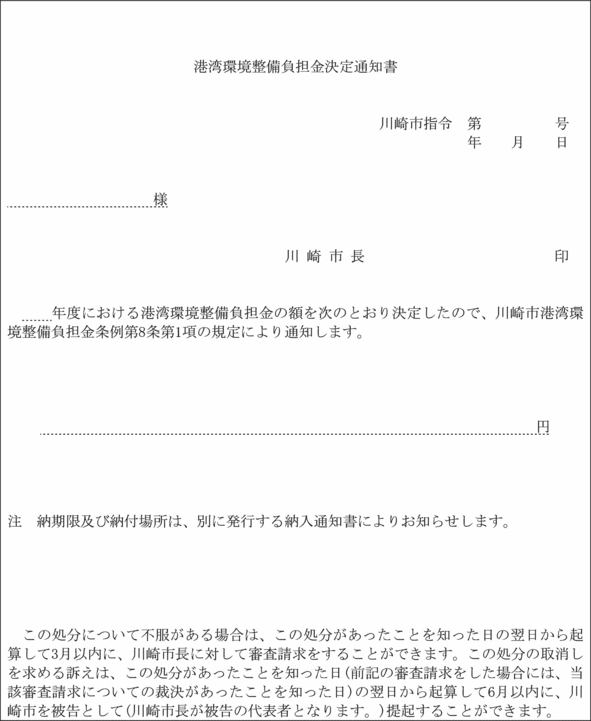 (港湾環境整備負担金の額の通知)