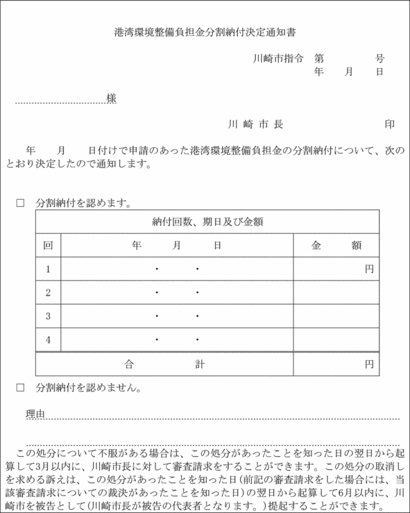 (港湾環境整備負担金の分割納付等)