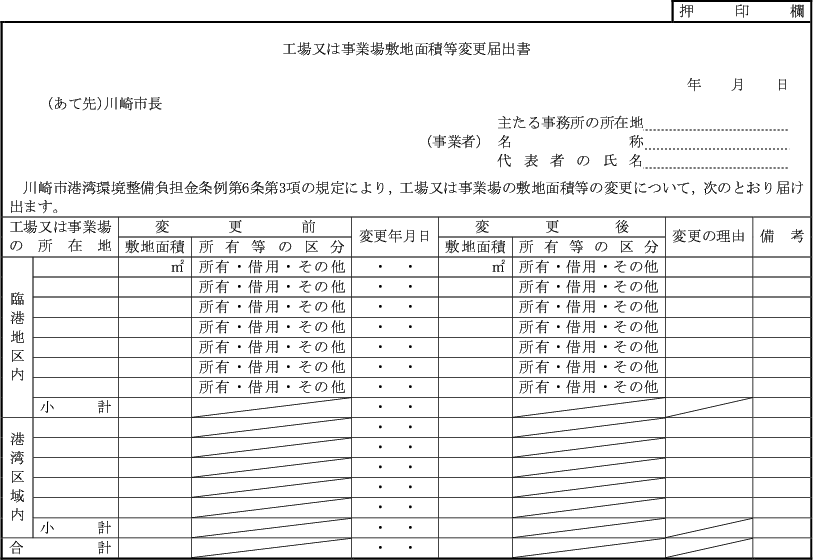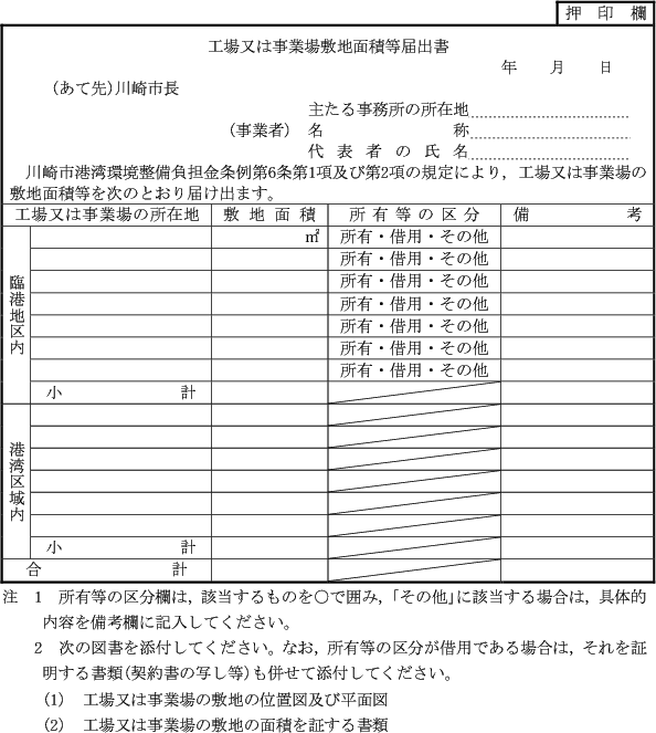 (工場又は事業場の敷地面積等の届出)