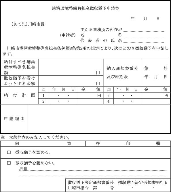 川崎市港湾環境整備負担金条例施行規則