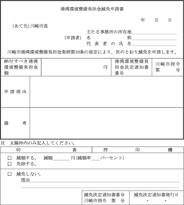 2 負担金の減額又は免除を受けようとする者は、港湾環境整備負担金減免申請書(第9号様式)を市長に提出しなければならない。