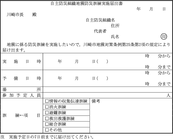 (自主防災組織が実施する地震に係る防災訓練の届出)