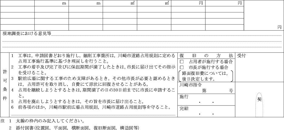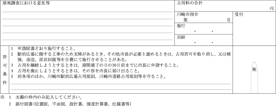 第3条第2項に規定する許可申請 | 駅前広場占用及び工事施行許可書(第5号様式) |