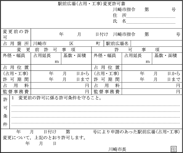 第5条に規定する変更許可申請 | 駅前広場(占用・工事)変更許可書(第6号様式) |