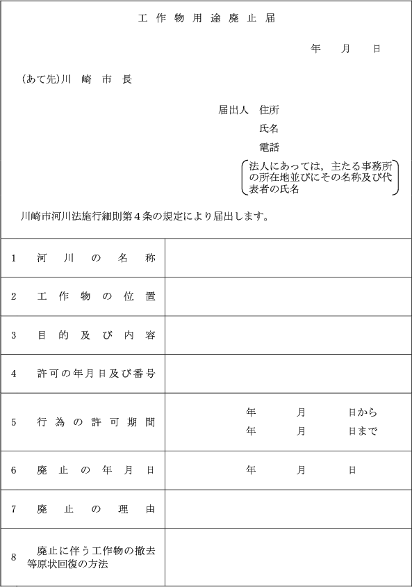 (工作物用途廃止届)