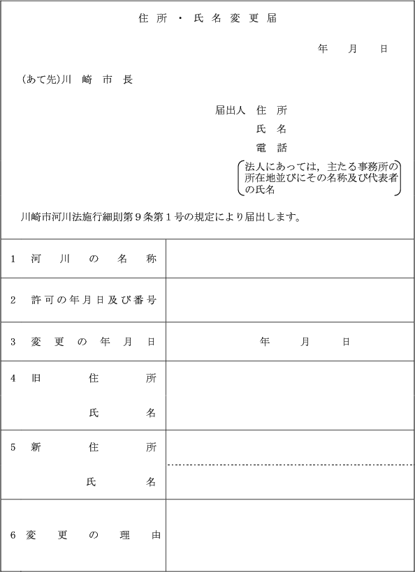(1) 当該承認又は許可の申請書に記載した住所又は氏名(法人にあっては、主たる事務所の所在地又はその名称若しくは代表者の氏名)に変更を生じた場合 住所・氏名変更届(第4号様式