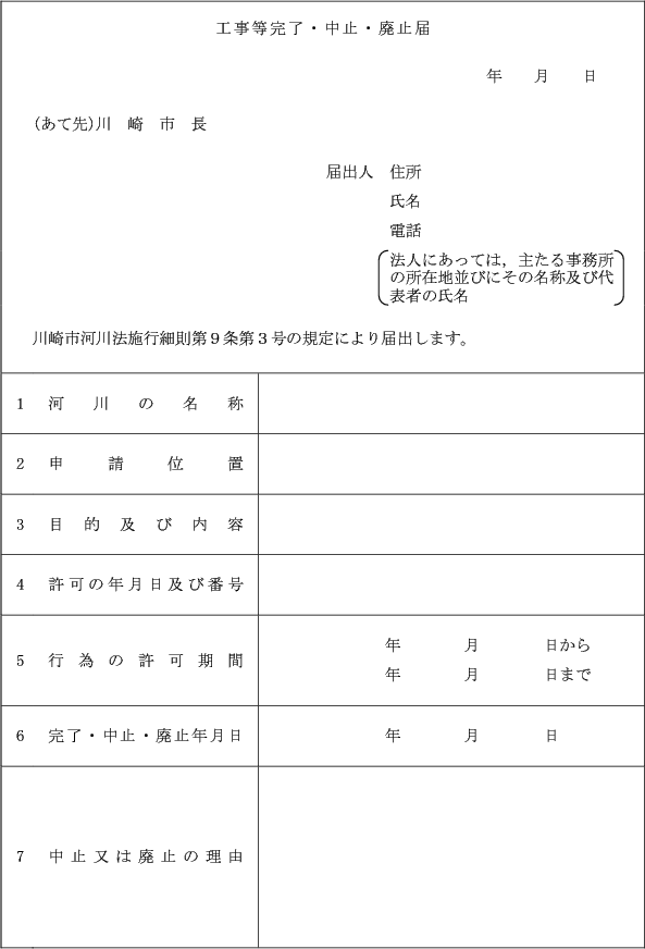 (河川工事等承認申請書)