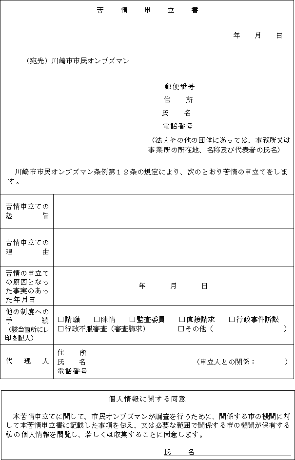 (苦情申立書等)