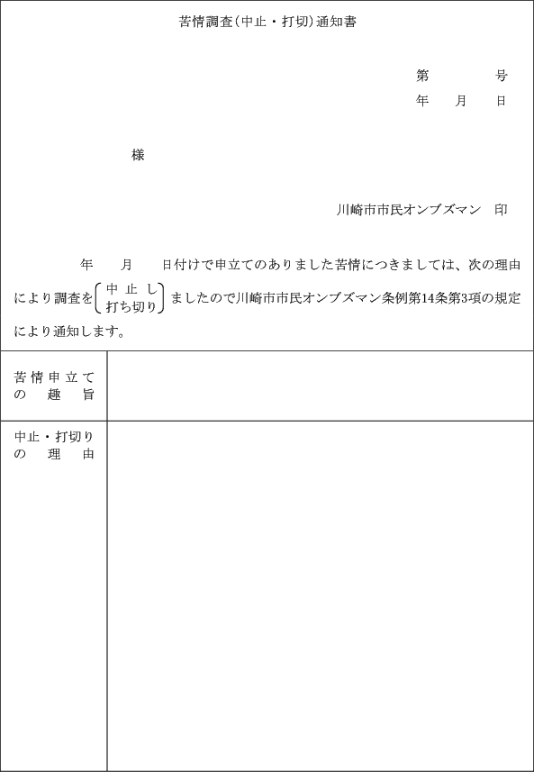 (苦情調査中止等の通知)