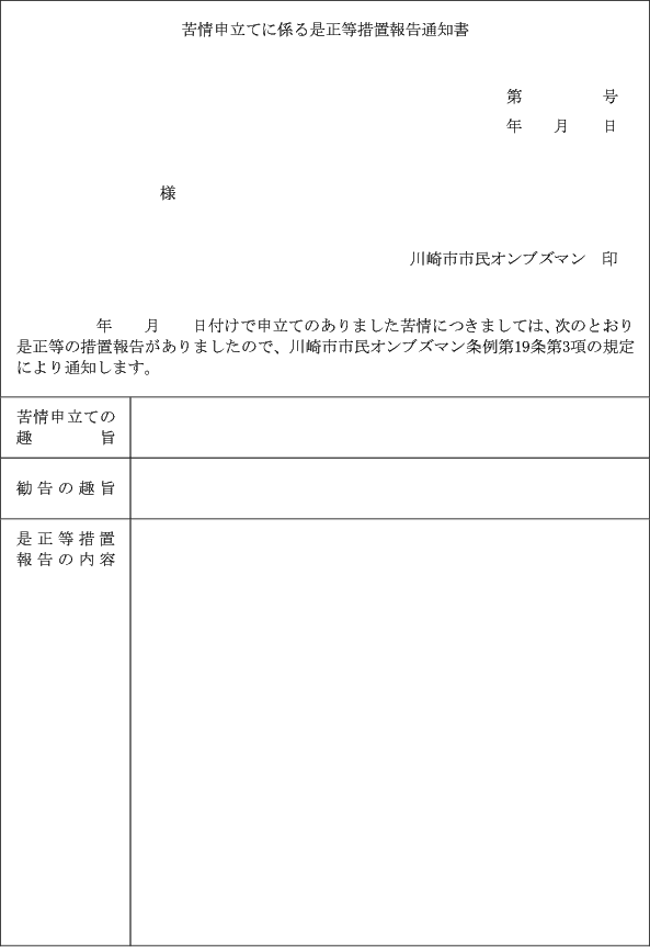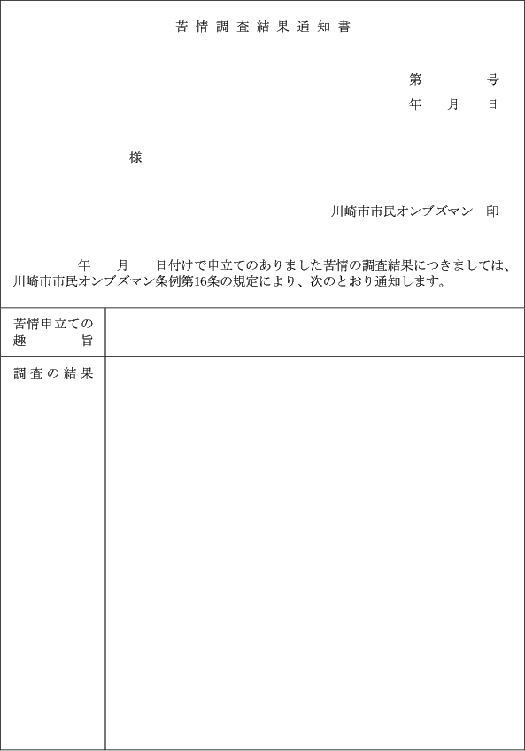 (苦情調査結果の通知)