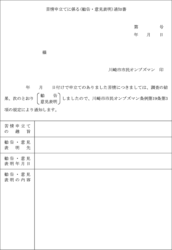 (勧告、意見表明等の通知)