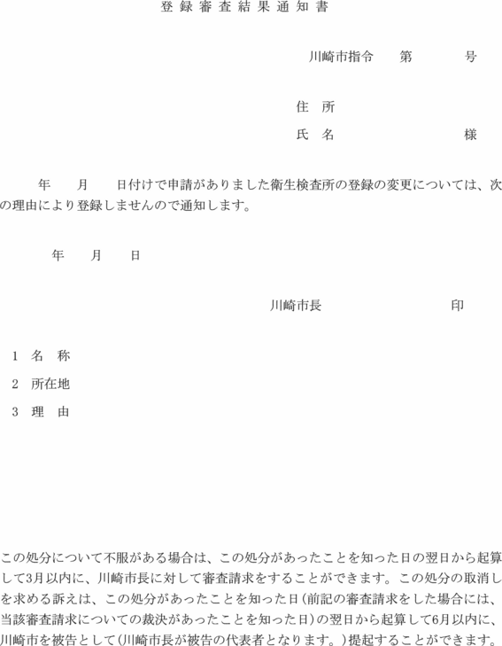 2 市長は、法第20条の3第2項の規定により、登録を行わないときは、登録審査結果通知書(第2号様式)により申請者に通知する。