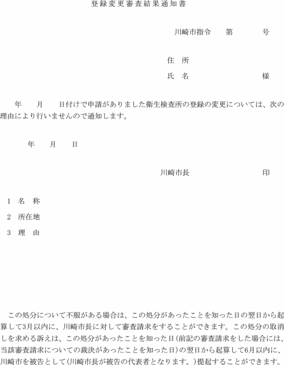 3 市長は、法第20条の4第2項において準用する法第20条の3第2項の規定により、登録の変更を行わないときは、登録変更審査結果通知書(第3号様式)により申請者に通知する。