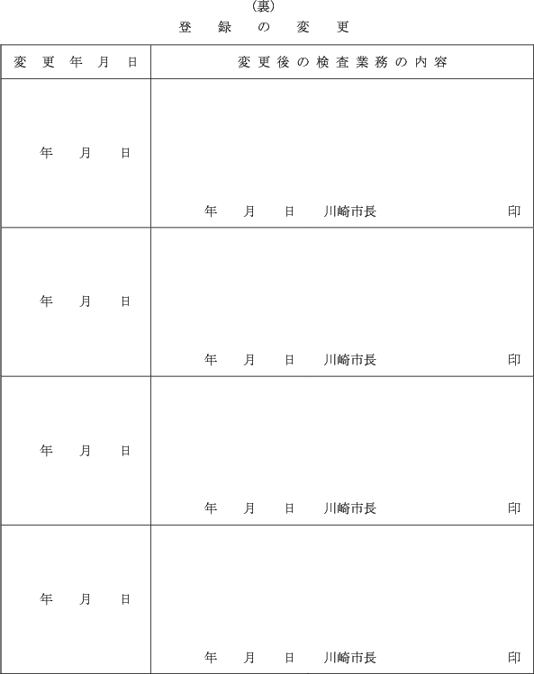 第4条 法第20条の4第3項後段の規定により、衛生検査所の変更の届出をしようとする者は、省令第16条第2項に規定する届書に次に掲げる書類を添えて、市長に提出しなければならない。