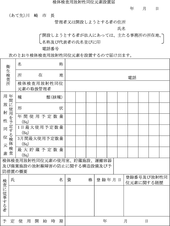 (検体検査用放射性同位元素設置の届出)