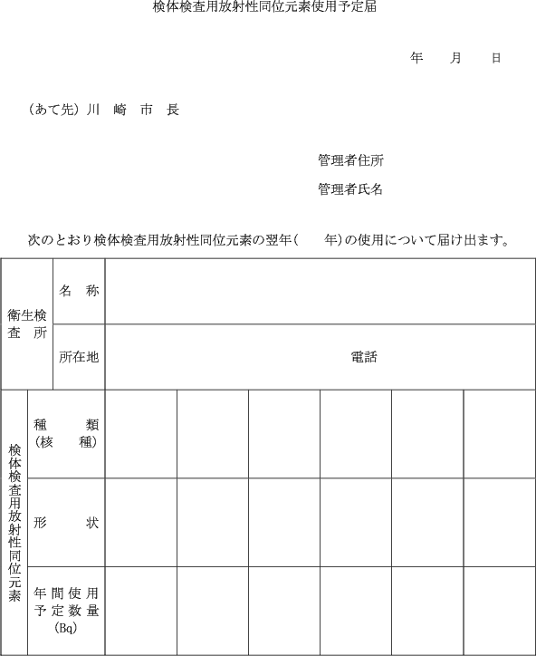 (検体検査用放射性同位元素使用予定の届出)