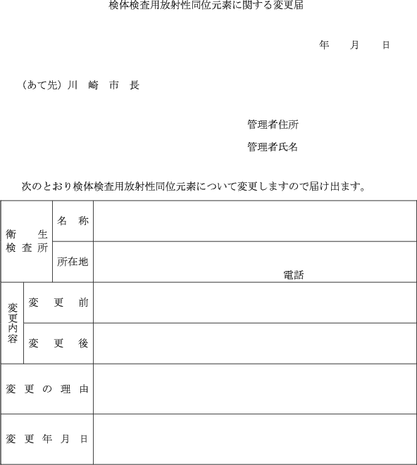(検体検査用放射性同位元素に関する変更の届出)