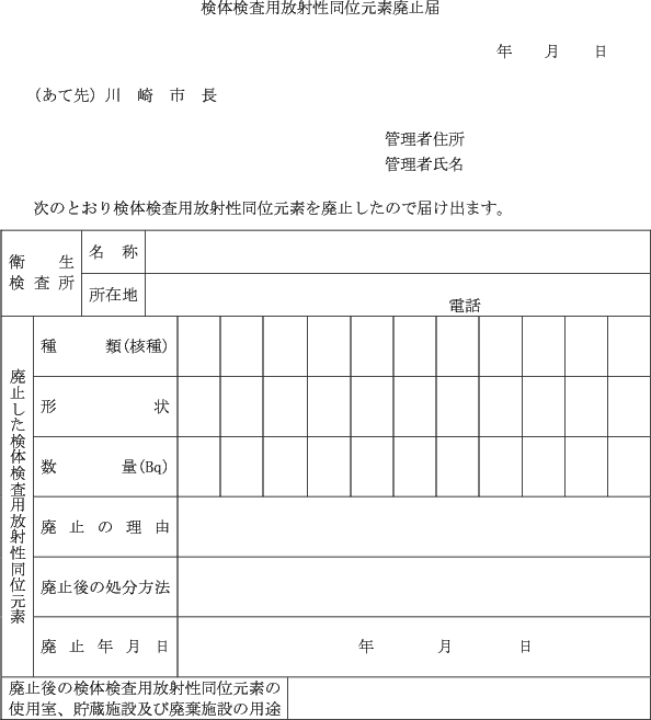 (検体検査用放射性同位元素廃止の届出)