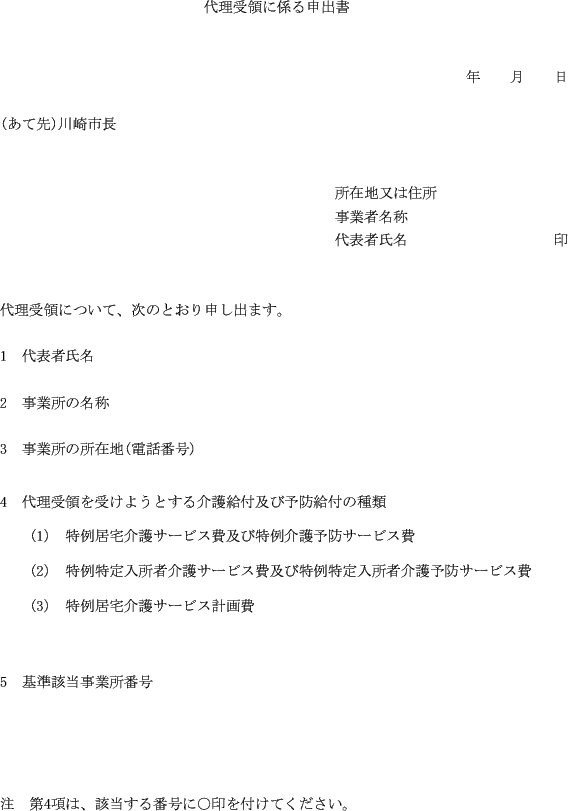9 サービス登録事業者は、前項の請求を行うときは、介護保険特例居宅介護(介護予防)サービス費等支給申請書(受領委任用)(第8号様式)を市長に提出するものとする。
