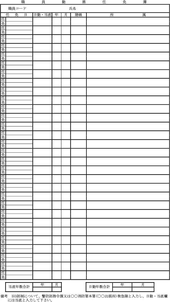 2 署長は、前項第1号又は第2号により職員の任免を行う場合には職員勤務任免簿(別記様式)に登載しなければならない。