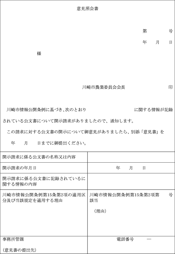 2 条例第15条第1項及び第2項の規定による通知は、意見照会書(第7号様式)により行うものとする。ただし、同条第1項の規定により通知する場合であって、委員会が書面により行う必要がないと認めるときは、この限りでない。