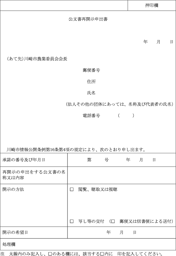 第10条 条例第16条第4項の規定による申出は、公文書再開示申出書(第11号様式)により行わなければならない。