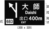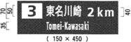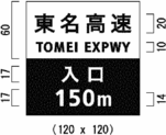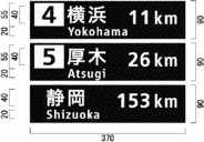 ウ 自動車専用道路に設置する案内標識で、地名が表示されているものについては、地名を表示する文字の数の多少により図示の横寸法を拡大し、又は縮小することができる。