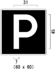 カ 自動車専用道路以外の道路に設置する「駐車場」を表示する案内標識については、便所を表す記号を表示する場合にあっては、図示の横寸法を図示の寸法の2.5倍まで拡大することができる。
