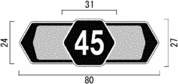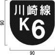 カ 自動車専用道路に設置する「方面及び方向」を表示する案内標識に路線を表す記号を表示する場合の当該記号の大きさは、経由路線を表す記号については日本字の大きさの1.6倍以下、方面としての路線を表す記号については日本字の大きさの0.9倍以下の大きさとする。
