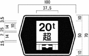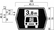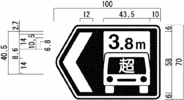 キ 自動車専用道路以外の道路に設置する「駐車場」、「都道府県道番号(118の2-Aに限る。)」、「総重量限度緩和指定道路」、「高さ限度緩和指定道路」及び「まわり道(120-Aに限る。)」を表示する案内標識並びに警戒標識については、道路の形状又は交通の状況により特別の必要がある場合にあっては図示の寸法(カに規定するところにより図示の横寸法を拡大する場合にあっては、当該拡大後の寸法)の1.3倍、1.6倍又は2倍に、それぞれ拡大することができる。