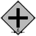 十形道路交差点あり (201-A) | 右(又は左)方屈曲あり(202) | 信号機あり (208の2) |