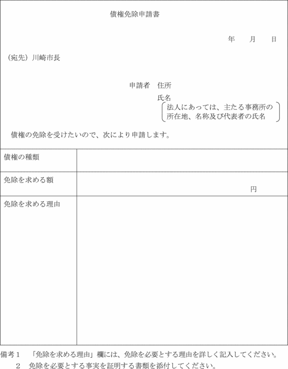 2 前項の申請は、債権免除申請書(第3号様式)を提出することにより行わなければならない。