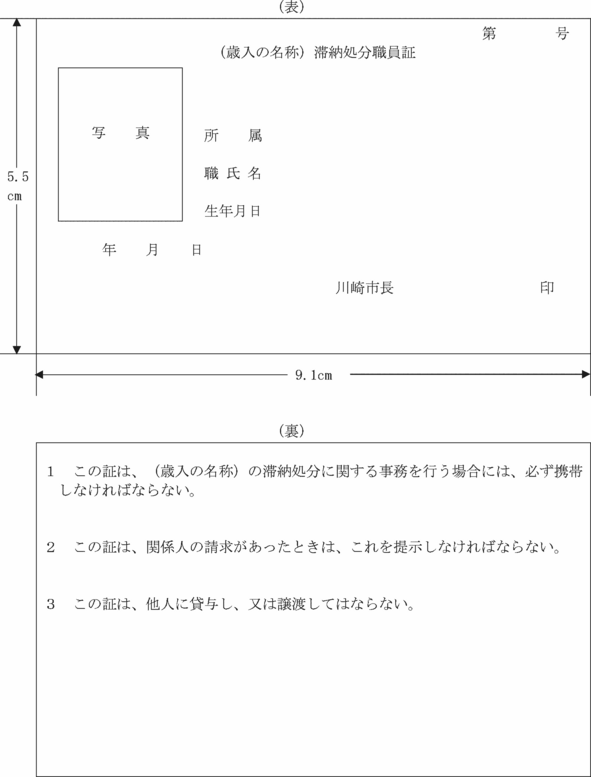 2 前項の規定により委任を受けた職員は、歳入の滞納処分に関する事務を行う場合においては、滞納処分職員証(第7号様式)を携帯し、関係人の請求があったときは、これを提示しなければならない。