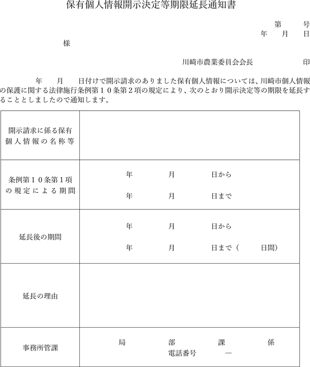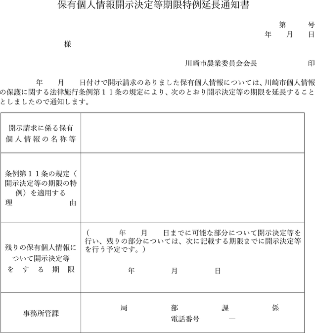 保有個人情報開示決定等期限延長通知書