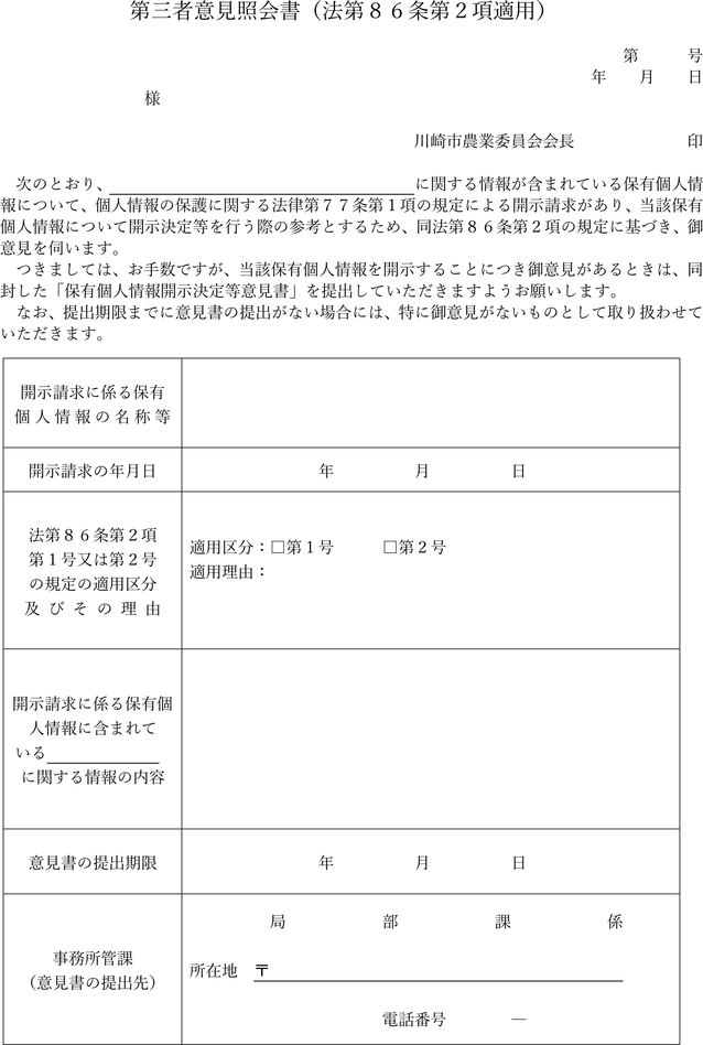 第三者意見照会書(法第86条第2項適用)